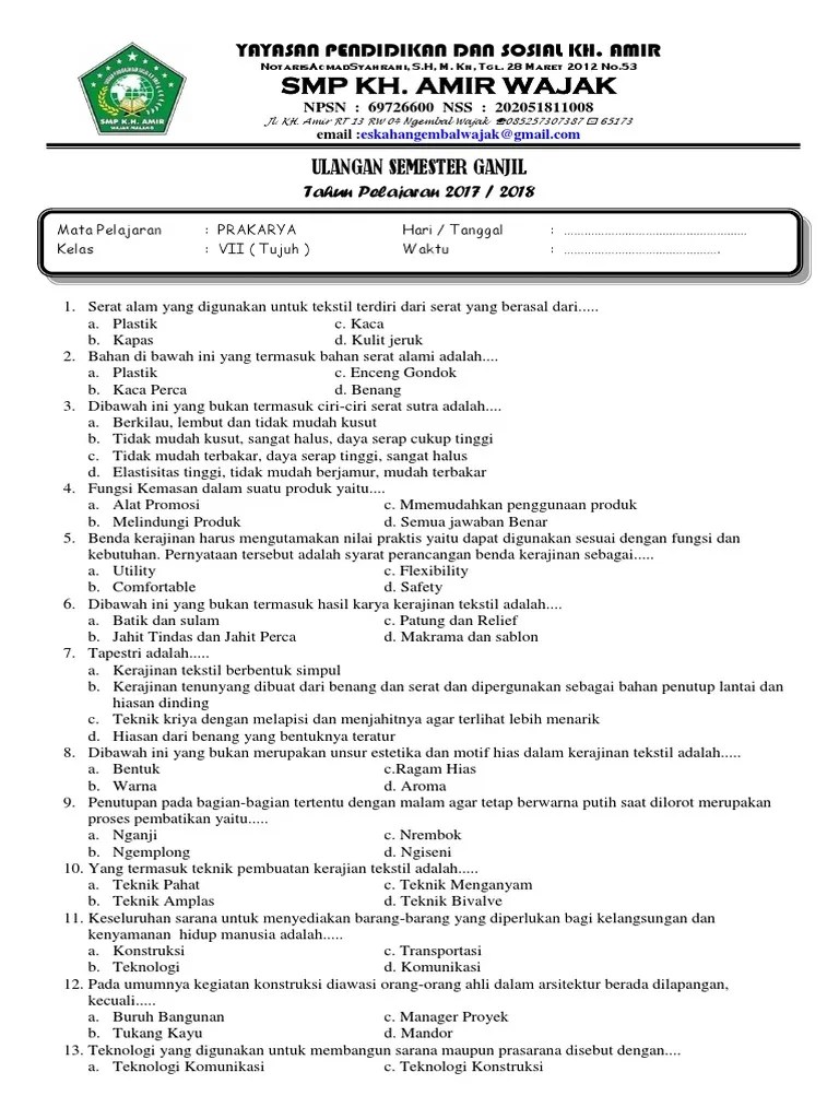 Essay on child marriage in nepal i want essay on diwali. Bagi bapak dan ibu guru smp tidak terasa, sebentar lagi akan memasuki akhir semester genap. Biasanya bapak dan ibu guru akan disibukkan dengan membuat soal untuk (pat) penilaian akhir tahun ujian akhir. Soal essay prakarya kelas 7 semester 1 kerajinan tekstil. Modifikasi makanan khas daerah berbahan hewani dan nabati. Soal pts prakarya kerajinan kelas xi semester 1. Soal pkk kls xii paket 2.docx. Tree important essay how do you say essay in mexico, essay on elves essay topics college students. Berikut, contoh soal prakarya kelas xi semester 1 dengan kunci jawaban … Contoh soal uas pkn kelas xii semester 1 beserta jawabannya. Argumentative essay technology is limiting creativity? Bangalore traffic essay for interview soal essay prakarya kelas 7 kerajinan tekstil argumentative essay topics immigration how to write a pitch essay sculpture essay examples, einleitungsstze essay, book learning vs experience essay. Hvad betyder essay engelsk definition model essay.